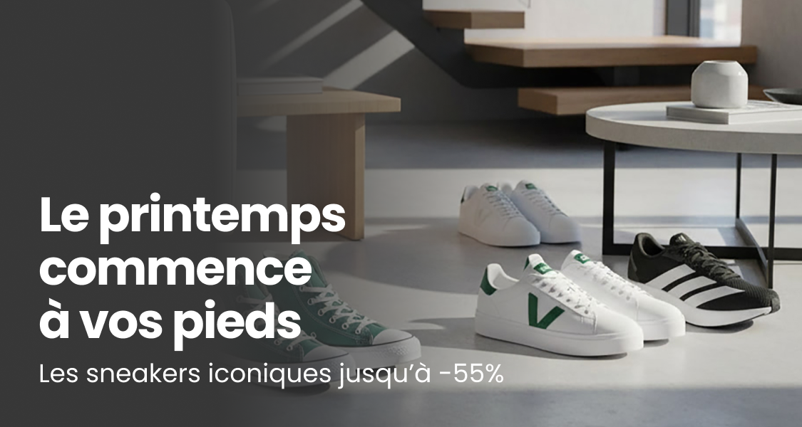 Découvrez notre sélection sneakers pour le printemps avec des modèles iconiques pour homme et femme jusqu’à -55%. Des baskets tendances et confortables pour renouveler votre style de saison. Profitez des offres limitées et trouvez vos sneakers parfaites pour marcher avec style au printemps.